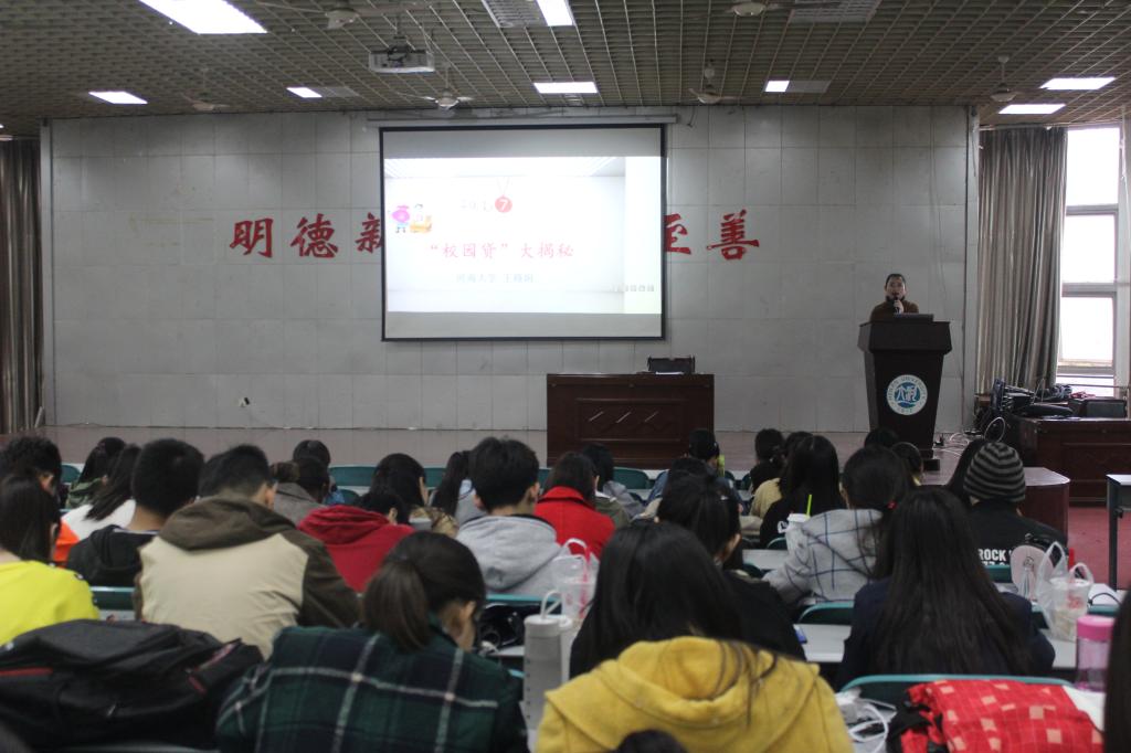 学术报告厅开展了大学生“校园贷”专题教育讲座,近350余名学生参加讲座。专题教育讲座由王路娟讲解。王路娟作了以“防范校园贷”为主题的专题讲解,分别从校园贷各类型的典型案例、大学生不良借贷问题的现状及危害、如何树立正确的消费及信用观念、自我反思等四个方面进行讲解。通过讲解校园贷的产生背景、发展过程,校园贷的不合理使用所引起的犯罪和自杀事件、校园贷申请过程中的各种陷阱等典型案例,使同学们深刻了解到校园贷的各种细节,帮助提高警惕心,加强自我保护能力。