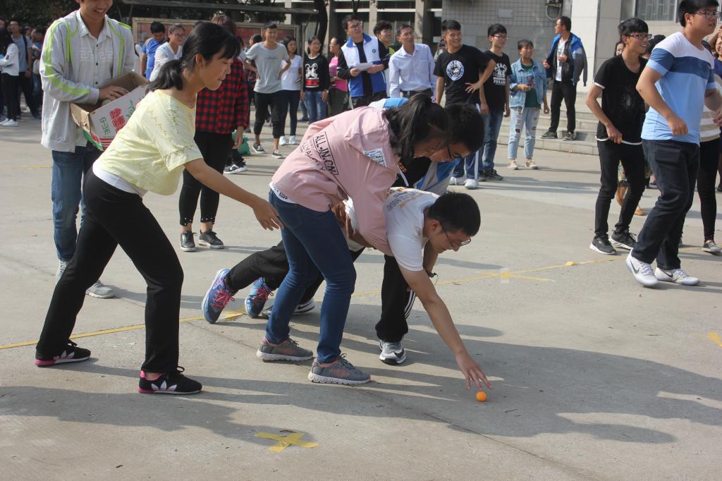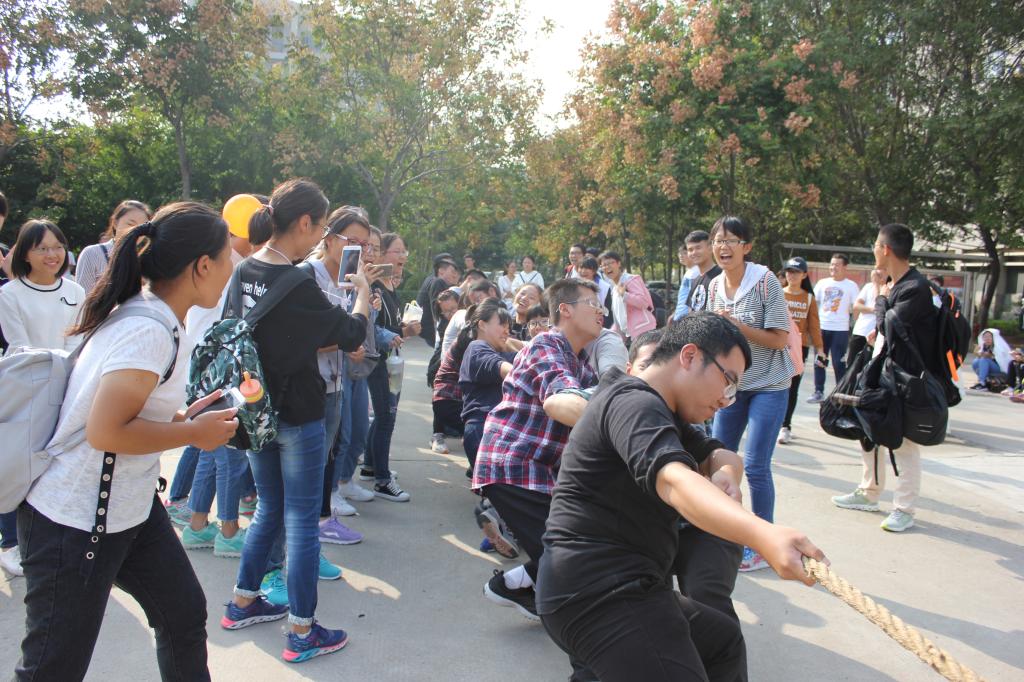 一声令下,友谊赛拉开序幕。首先进行的项目是以寝室为单位的四人混合接力,接力项目分别为夹球走、袋鼠跳、跳绳和托乒乓球跑。哨声吹响,同学们全力一搏,球掉了,再重来,不轻言放弃。观众们化身拉拉队,为参赛选手呐喊助威,场面热闹非凡。花样接力逗得观众捧腹大笑。最夺人眼球、激动人心的项目是以专业为单位的拔河比赛,哨声一响,队员们情绪高涨,齐声高喊“一、二、拉”,整齐有序的口号响彻秋日的天空。即使胜负难分,大家也毫不退让,咬紧牙关,坚持到底,使出浑身解数为荣誉而战。一旁的啦啦队更是不甘示弱,为自己的队伍加油呐喊。赛场上的欢呼声、呐喊声此起彼伏,将比赛氛围推向高潮。不论结果如何,都有一股凝聚的力量将同学们的心连接在一起。最后,521、417宿舍在四人混合接力项目中勇夺第一,材料化学专业赢得趣味接力的第一名,化工专业在拔河比赛中过关斩将,勇夺桂冠。