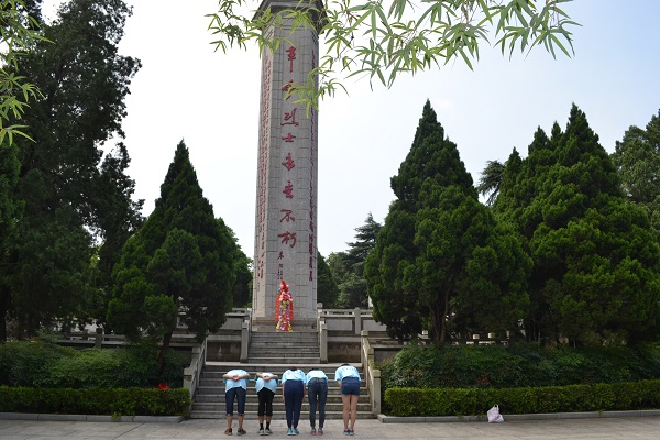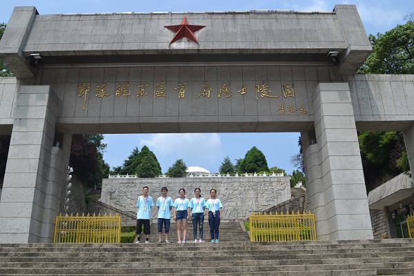 的8名志愿者怀着对先烈崇敬的心情前往鄂豫皖苏区烈士陵园吊烈士陵园,缅怀革命先烈,继续寻“根”之旅。