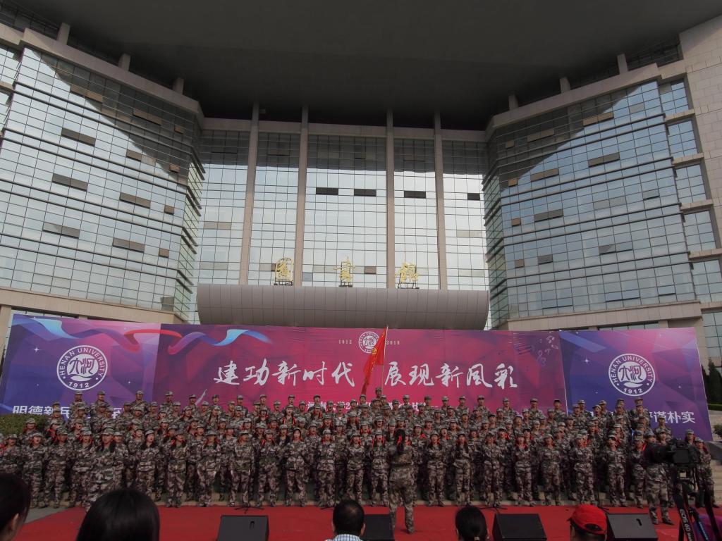 9月12日下午,以“建功新时代,展现新风采”为主题的河南大学歌咏比赛在图书馆前明德广场举行。飘扬的军旗,飒爽的英姿,豪迈的战歌,歌咏比赛在热烈的气氛中拉开了帷幕。