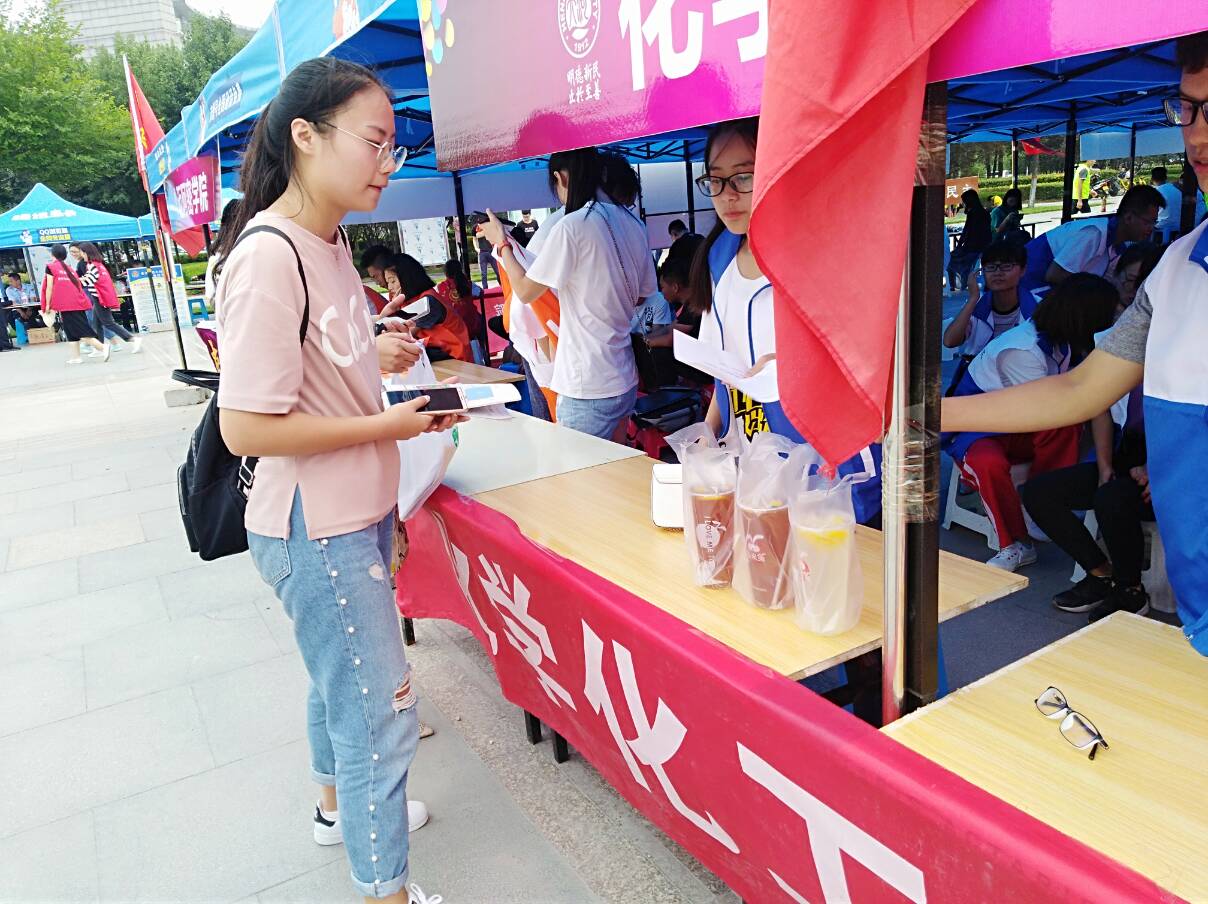 在图书馆前的广场设置了迎新摊位,安排工作人员将新生引至体球网即时比分足球比分