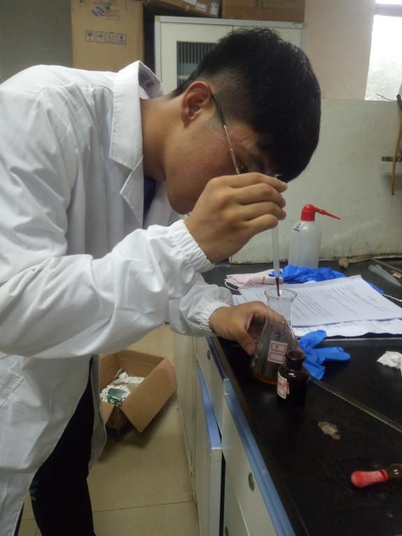 下午,稍作休整的队员们来到实验室准备仪器,配制溶液,开始了水样指标的检测。在指导老师的帮助下,队员们连续工作五个多小时,马不停蹄地进行检测。