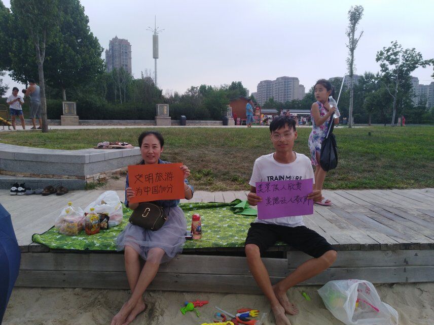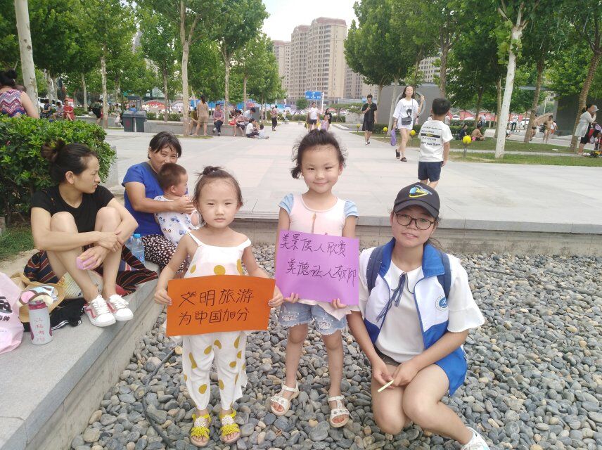 此外,为了增加活动的意义,志愿者们还会与游客手拿宣传标语合影留念,一起宣传文明旅游,同时,也可以得到一份精美的小礼品。