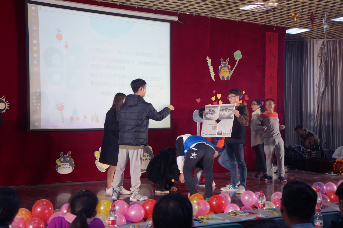 对新生成长的关怀以及师生之间的亦师亦友的深厚情谊。穿插于节目中的游戏和互动环节抽奖更是将晚会推向了高潮,同学们积极参加,会场气氛热烈。《悟空》、《老大+红日》、《天空之城—小提琴独奏》、《时间煮雨》等歌曲为现场观众献上了一场听觉盛宴,舞蹈《舞神》、《部长秀》活力四射,令人应接不暇。来自青协的《追光者》手影舞唯美动人,让人耳目一新,原来黑夜中的星光如此唯美动人。最后,本次晚会在《这就是爱》的悠扬旋律中落下帷幕。