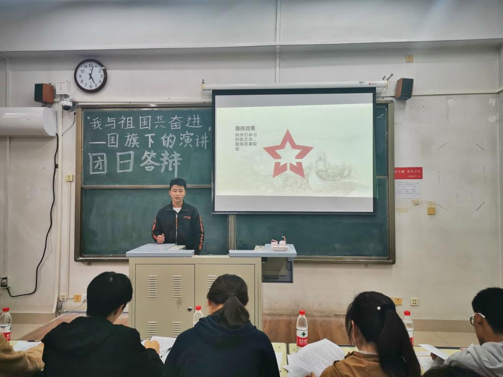 于7102教室举办“我与祖国共奋进——国旗下的演讲”团日答辩活动。本次团日答辩由团委组织部刘璐主持,团委副书记黄梦瑶、王金鑫及各年级团支书担任评委,各支部书记参与。
