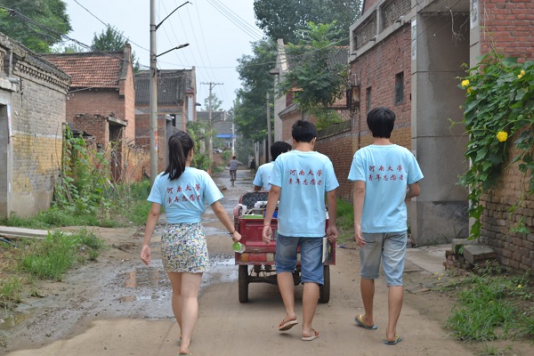 “筑梦—帮扶”暑期社会实践团队的志愿者们正在安阳滑县老店镇田庄村为此美丽愿望献出一份力。