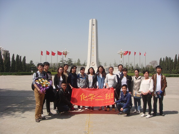 2013级化学二班全体学生前往开封市烈士陵园,缅怀先烈英雄。烈士陵园科长马丽热情接待,带领同学们重温革命先烈的英勇事迹。