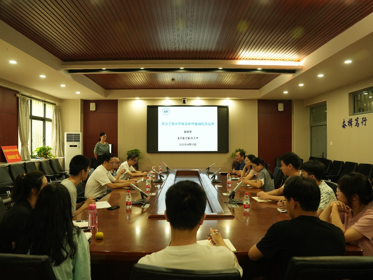 衡利苹做了题为“高分子复合界面液体传输调控及应用”的学术报告,介绍了高分子复合材料表界面微观结构、外场作用与液体黏附调控的关系,详细讲解了导电高分子多孔材料的应用及光电协同响应机理,阐述了通过光电协同作用能够实现液滴在界面上的可控输运。
