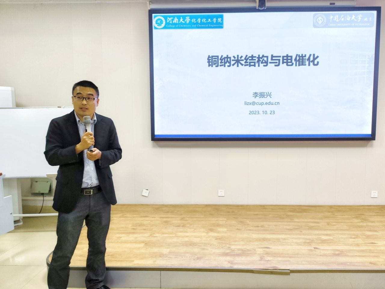李振兴教授做了题为“铜纳米结构与电催化”的报告,向师生们介绍了其课题组围绕构筑铜基纳米材料的研究进展。详述其课题组通过调控合成过程,优化反应条件,制备了一系列铜基纳米材料,并提出可行的纳米颗粒的生长机理,揭示和明确催化反应中催化剂的构效关系,为金属纳米材料的催化体系的开发打下基础。
