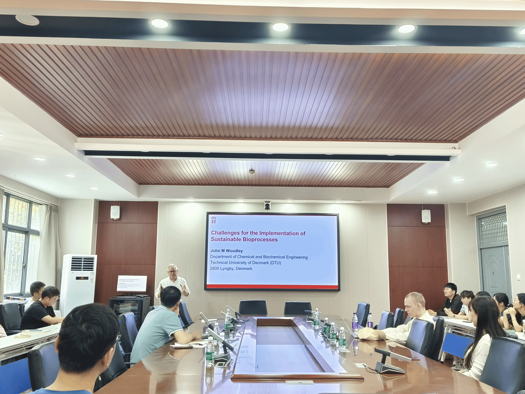 报告中,John M Woodley概述了各种生物工艺技术最适合的应用场合,并特别强调了使用酶进行生物催化合成化学品的潜力。探讨了这些技术如何作为未来食品、化学品和药品生产的关键技术,以及它们在环境清洁和回收潜在有害物质(如二氧化碳)方面的作用。同时也指出了生物工艺在满足不同工业需求时可能遇到的局限性,并讨论了它们是否都能提供可持续性益处。此外,他还提供了一些关于如何克服实现可持续生物工艺的工业实施所需挑战的实际例子。报告结束后,他与参会师生进行了深入交流,并全面回答了大家提出的问题。