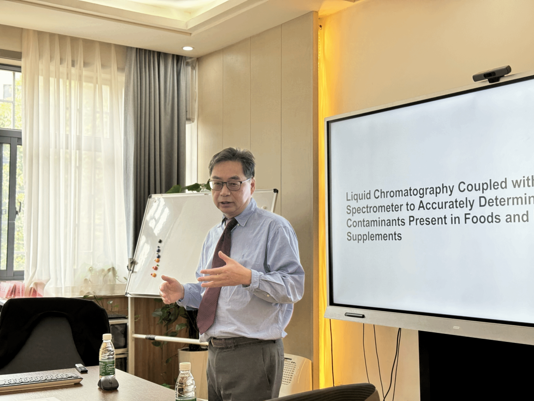 241会议室进行了一场题为“Liquid Chromatography coupled with Mass Spectrometer to accurately determine organic contaminants present in Foods and Dietary Supplements”的学术报告。本次报告由河南省药用植物资源化利用国际联合实验室主任刘绣华教授主持。