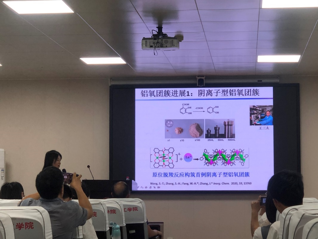 226会议室分别作了题为“表面全官能团化的二维材料”和“铝氧分子环的设计合成”学术报告。报告由副院长徐元清主持。
