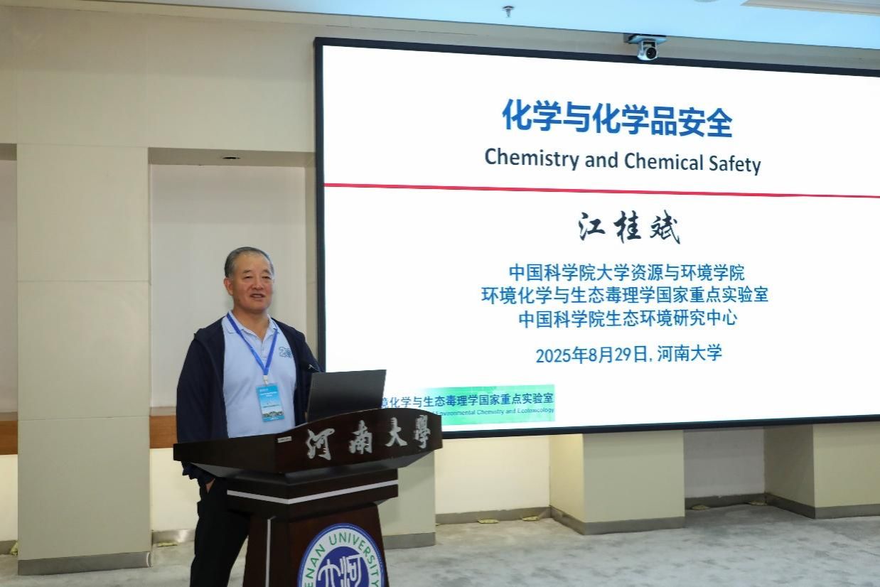 生态环境研究中心江桂斌研究员以《化学与化学品安全》为题作大会首场报告,系统阐述我国在新污染物研究与管控方面的重要突破。随后,海南大学孙轶斐教授、南开大学祝凌燕教授、四川大学吕弋教授和北京大学白玉教授分别围绕CO₂催化转化、全氟化合物污染、金属稳定同位素标记和单细胞代谢组分析等前沿课题分享最新研究成果。