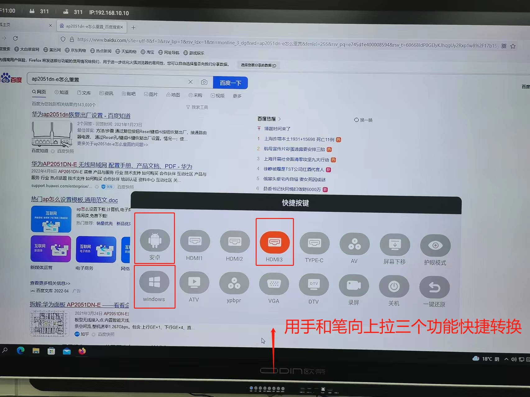 3.屏幕有“安卓系统”和“window”系统。正常使用是window系统(用手从屏幕下边缘上拉转换)