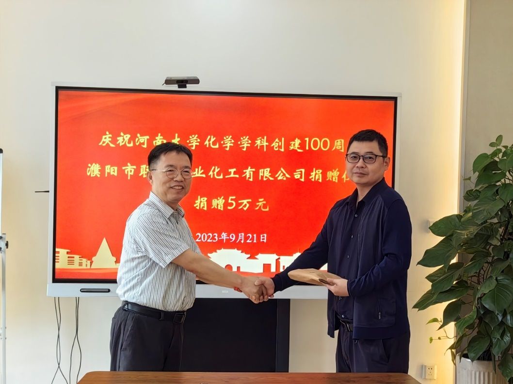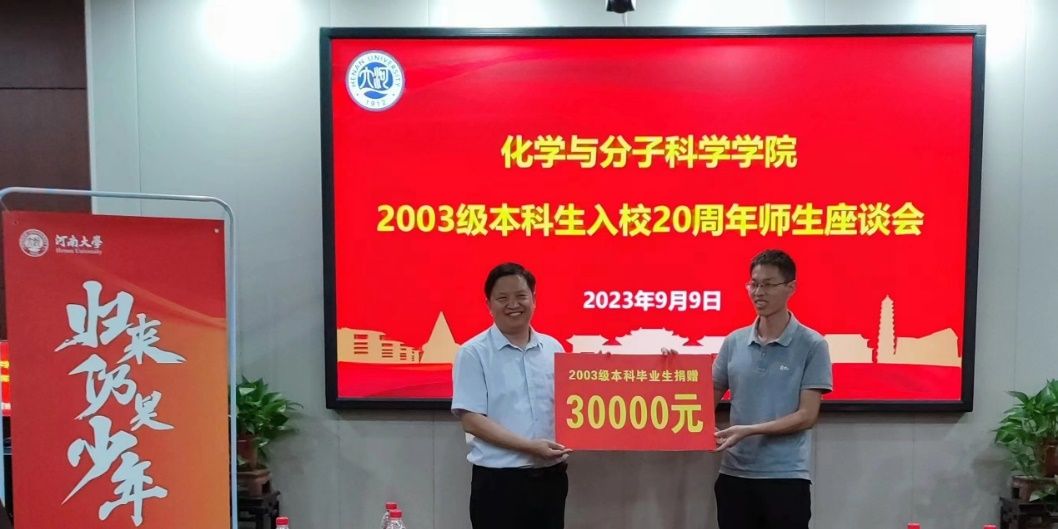 教育基金》《化学学科百年庆典基金》,校友任职的河南中镜科仪科技有限公司、河大纳米材料工程研究中心有限公司、濮阳市联众兴业化工有限公司等企业,1993届、2002届、2002届、2003届、2007届和2013届秩年返校年级,薛冬峰、李鑫恒、孙会靓、赵俊东等校友,共计为化学学科捐赠50余万元,助力学科和体球网即时比分足球比分