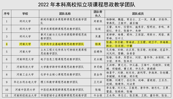 体球网即时比分足球比分 获批河南省化学类专业基础课程思政教学团队