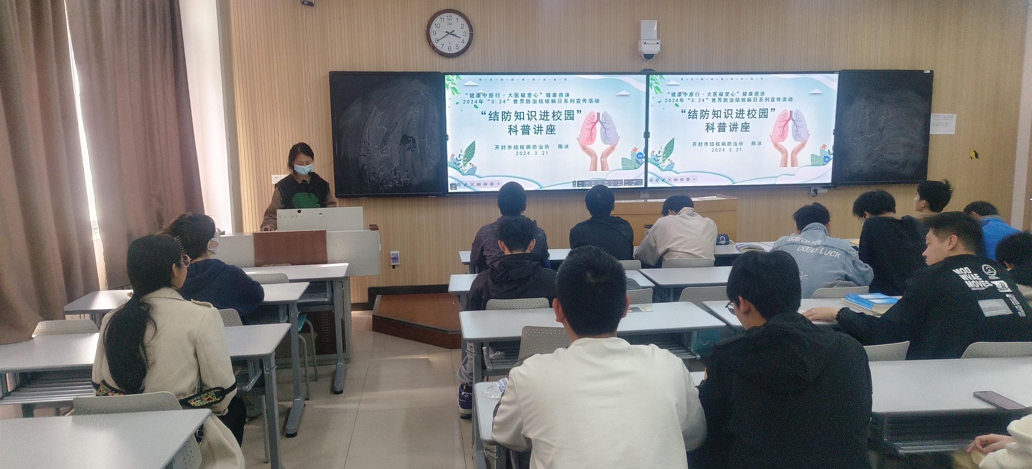 肺结核是常见的呼吸道传染疾病,主要通过吸入肺结核患者咳嗽、打喷嚏时飞出的飞沫传播等。为进一步做好结核病防控工作,提高广大师生对结核病预防的认识,体球网即时比分足球比分 积极组织学生参加学校《肺结核防治知识师资培训》,随后回体球网即时比分足球比分 以“你我共同努力 终结结核流行”为主题,开展结核病防治知识宣传教育。