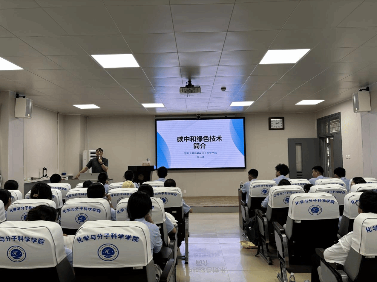 执行院长徐元清以《碳中和绿色技术简介》为题作科普报告,报告用生活化的语言、直观的图表和案例,介绍了“双碳”目标、绿色化学理念及其在日常生活中的应用,现场气氛热烈。
