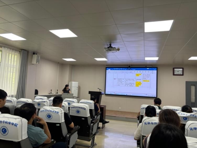 事业的高质量、高水平发展,全院教职工要提高思想认识,增强工作自觉性和主动性,明晰当前阶段任务,做好准备工作,确保审核评估工作顺利进行。李亚敏总结了目前审核评估工作中存在的问题,明确了专任教师阶段性的任务和要求。庞靖宇根据《物理化学实验》进行线上课程经验分享,为实验课程线上开展提供了宝贵的建议。其他实验任课教师也纷纷发言,发表自己的意见和建议。